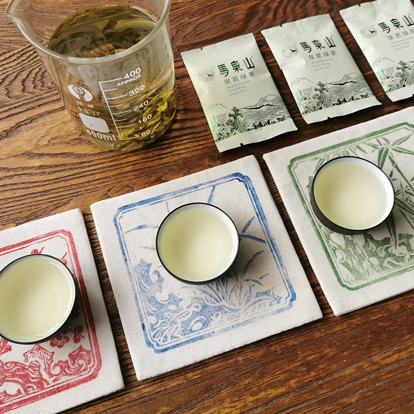 马泉山泉茗绿茶产自 2021年度茶业百强县(陕西省商南县) ,产地属于秦岭自然保护区范围,也是南水北调水源涵养地,当地生态环境良好,茶山不施农药,以谷雨前采摘茶树的一芽一叶初展叶为原料,在严格选料的基础上,经适度摊放,杀青、清风、初炒、做形起毫,烘焙、拣剔、包装等工序精制而成,属半炒半烘半机械化生产的高档卷曲形绿茶。具有外形紧秀弯曲、白毫显露,汤色嫩绿、清澈明亮、叶底黄绿、耐泡、回甜、滋味鲜爽,栗香浓郁持久的特点。